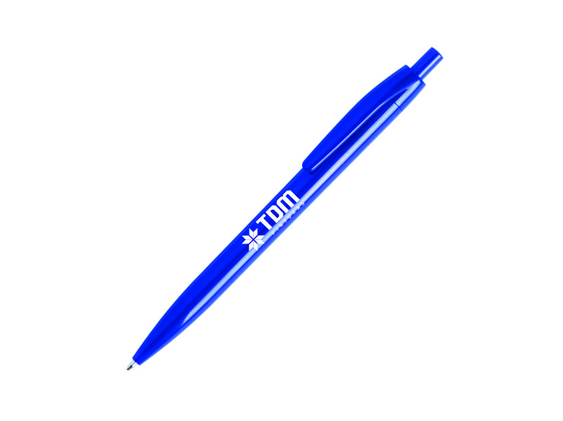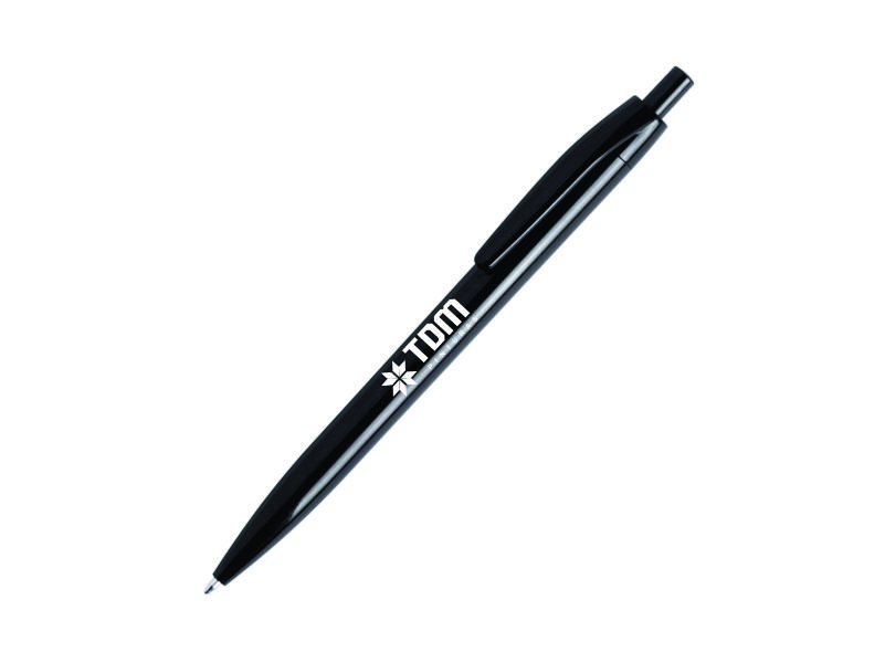 Notas: Bolígrafo diseño, monocolor con acabado brillante. Mecanismo de pulsador retráctil y escritura en tinta azul.